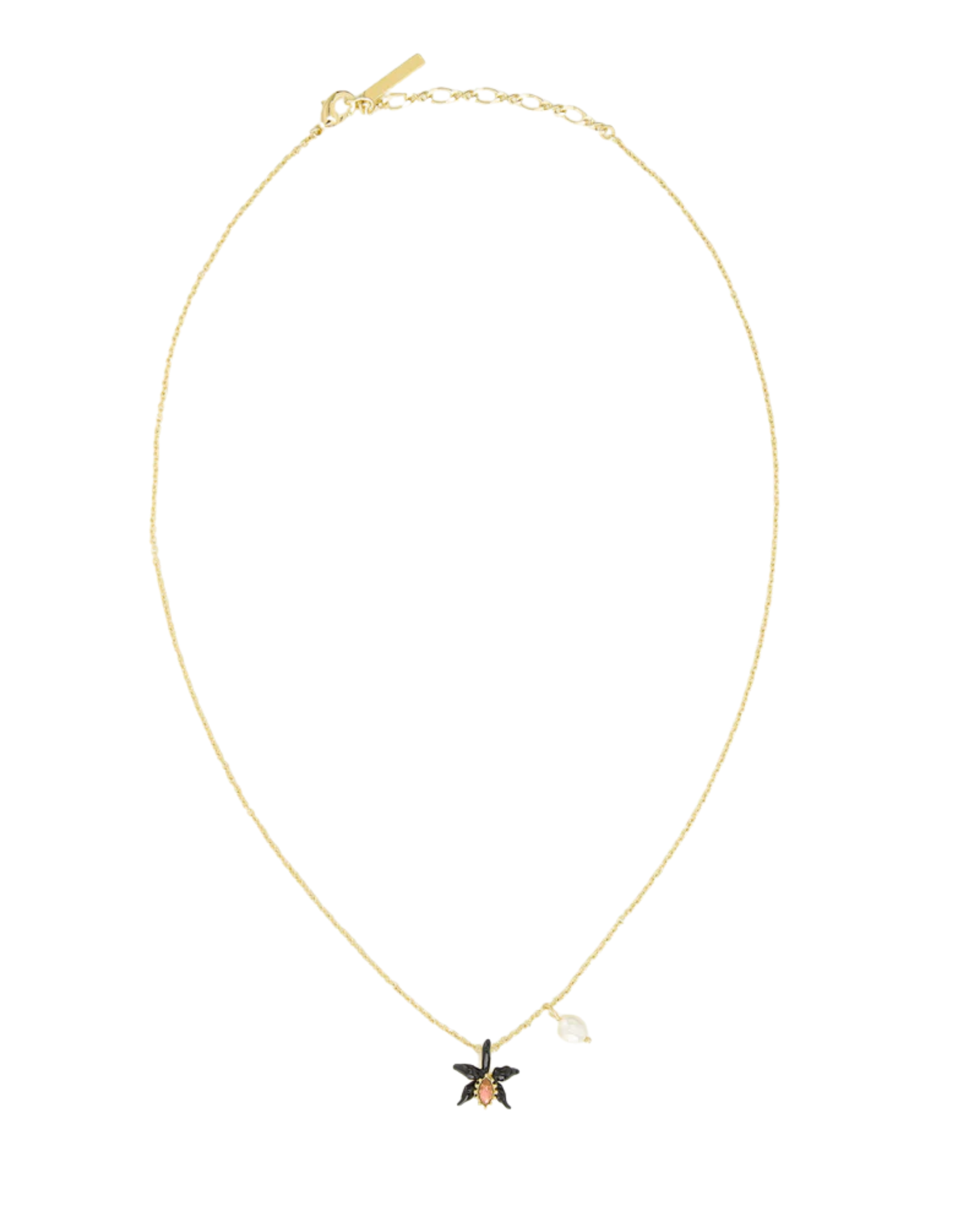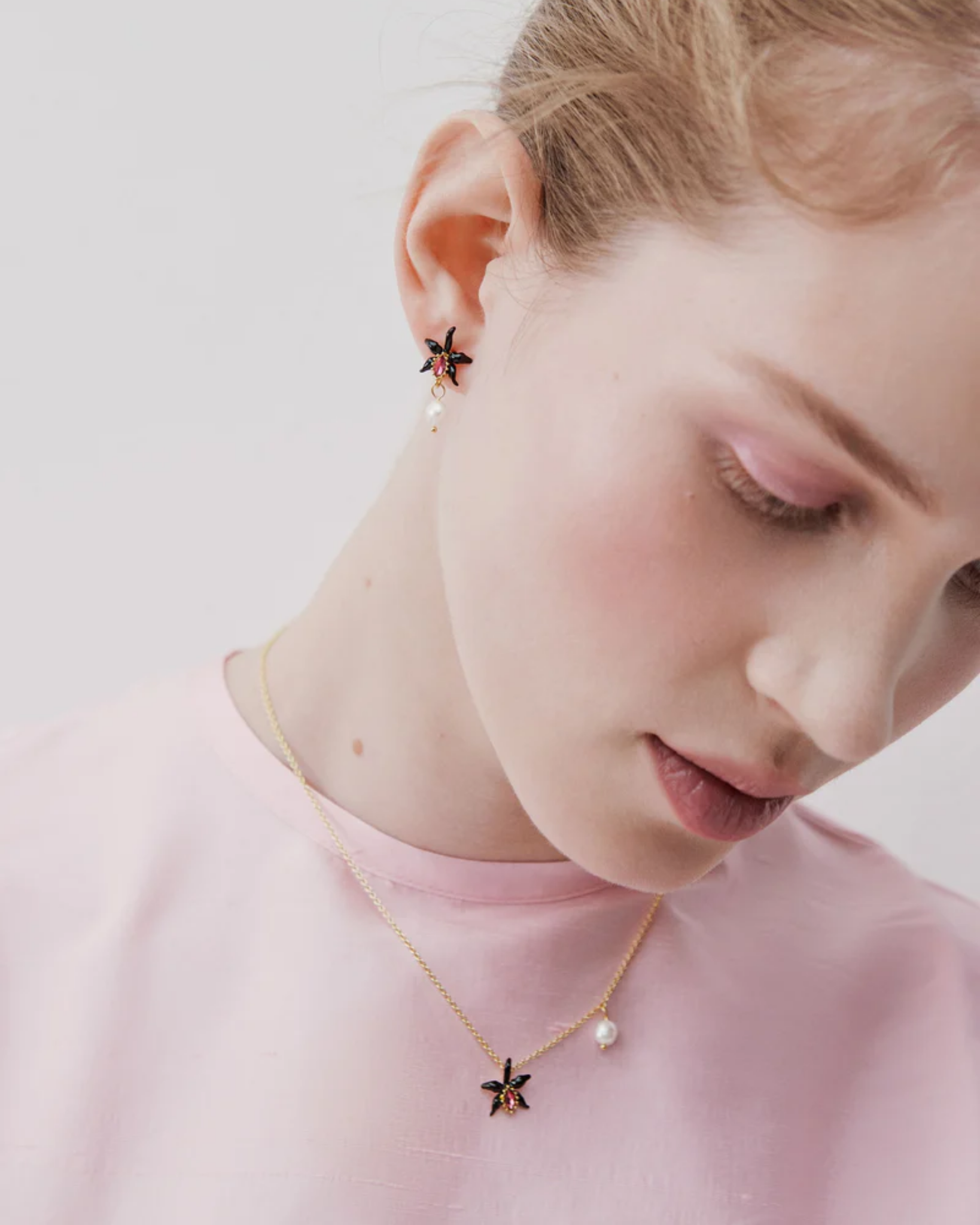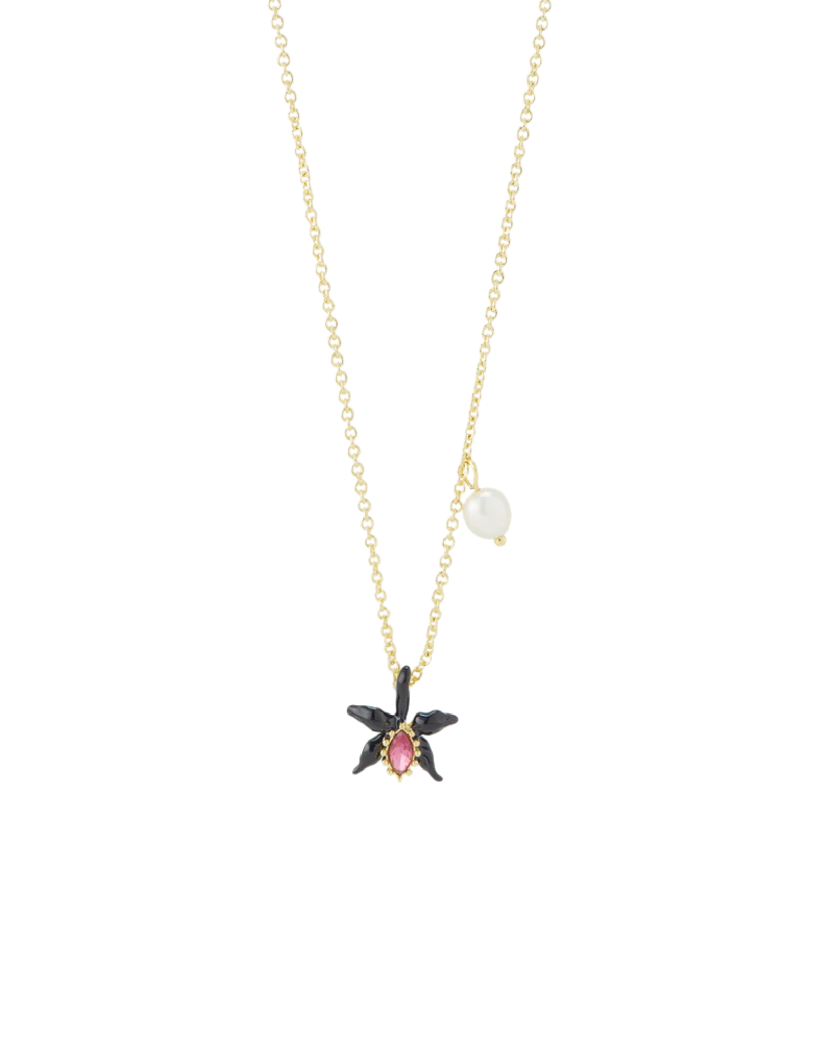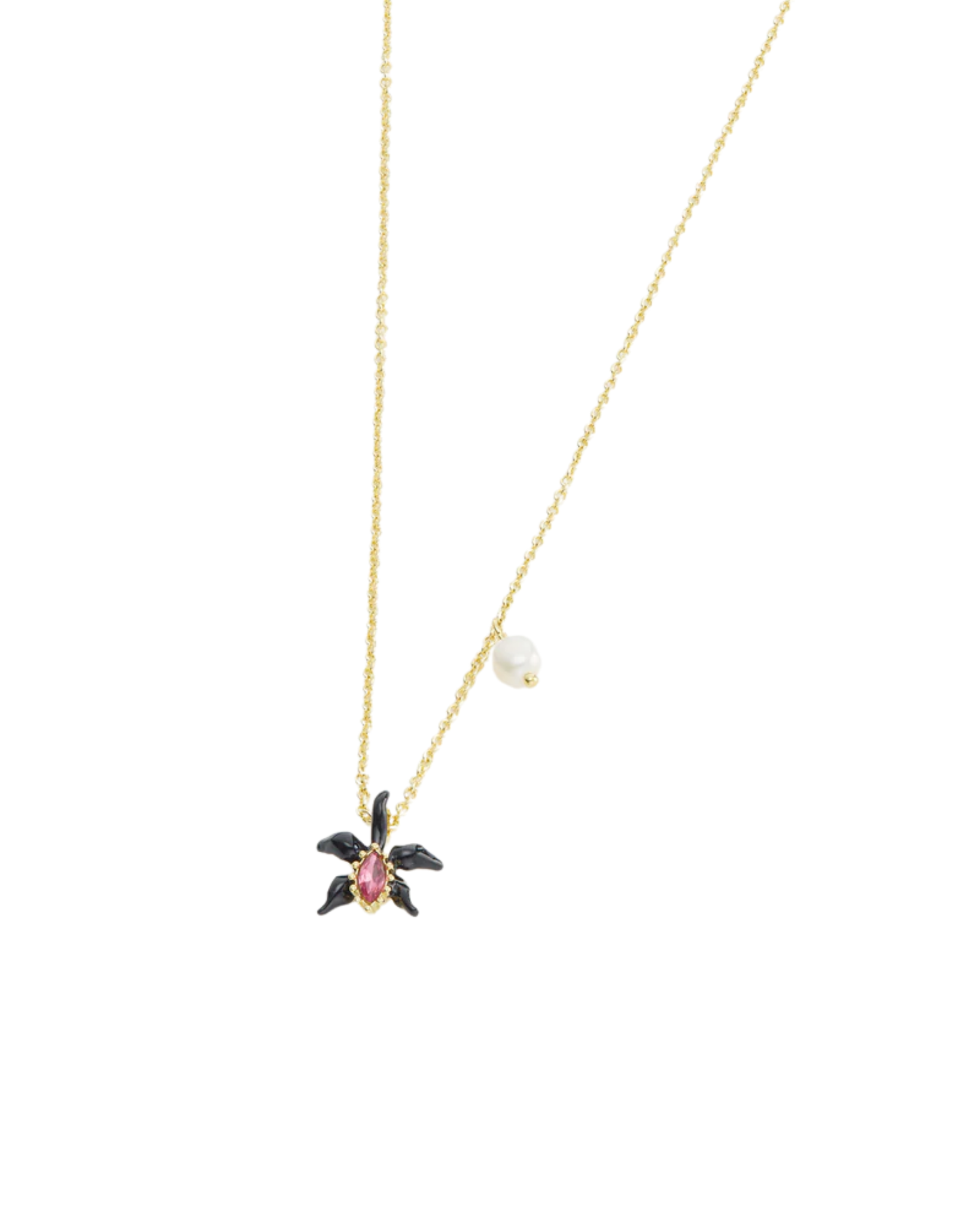 Les Néréides Fine black orchid necklace with pink faceted crystal and cultured pearl