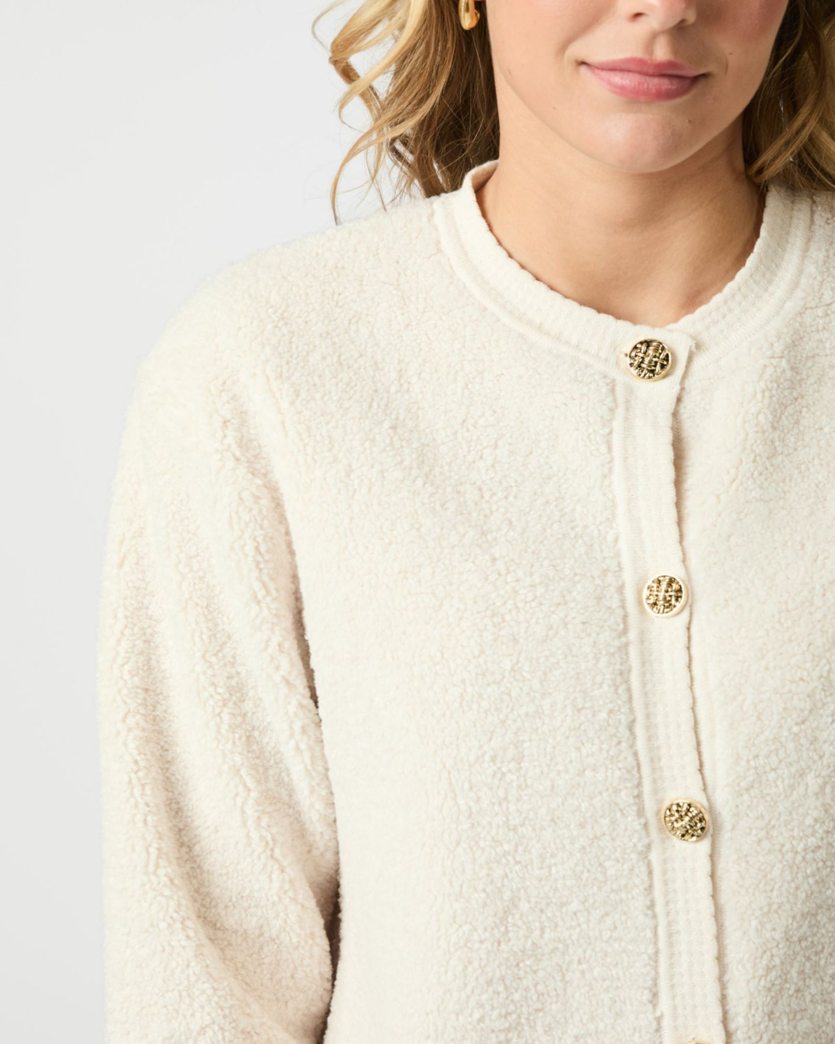 Neo Noir Limo Fluffy Knit Cardigan Creme